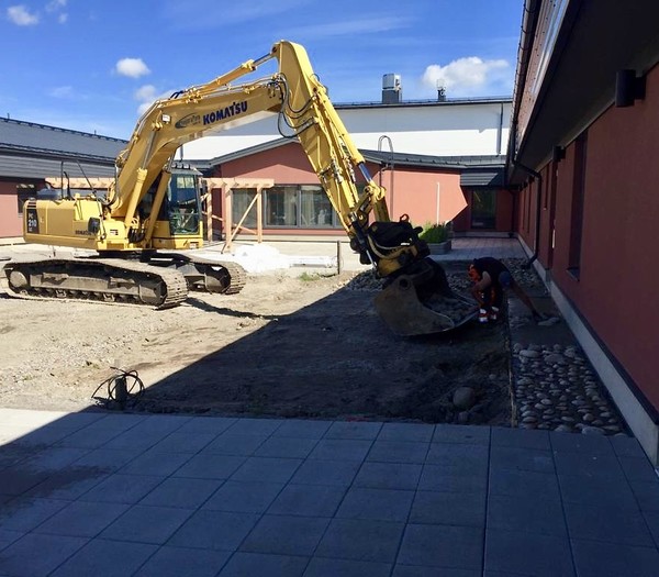 Kort och gott: Vi utför allt som behövs under en byggnad och runt omkring. Grundarbete, sprängning, dränering, avlopp, vatten, vägar.